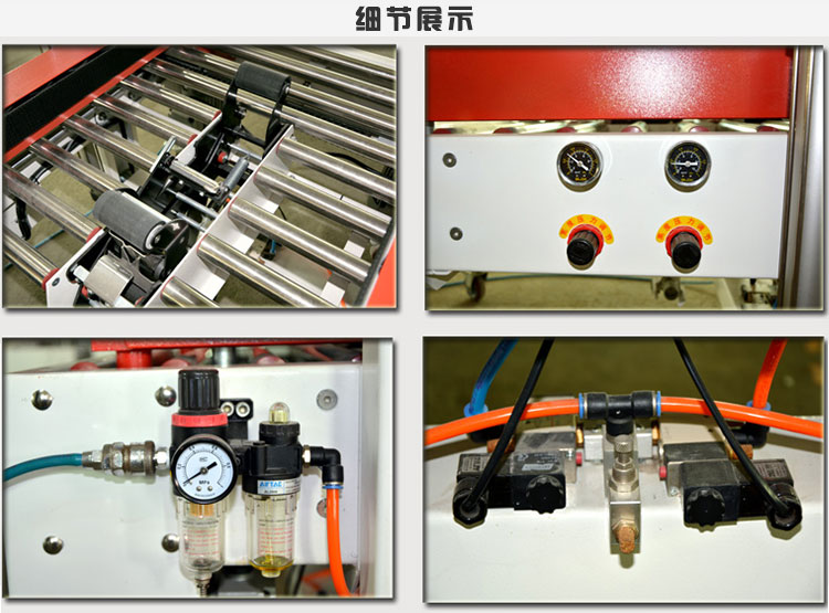 XHA-50左右驅(qū)動(dòng)封箱機(jī)適用于產(chǎn)品裝箱后較輕的紙箱封箱,封箱效果平整、規(guī)范、美觀,采用國際先進(jìn)精加工設(shè)備加工,精選國際知名品牌配件,能穩(wěn)定、品質(zhì)可靠、封箱效率高、適用性強(qiáng)、使用壽命長,已廣泛地應(yīng)用于食品、醫(yī)藥、飲料、煙草、日化、汽車、線纜、電子等國內(nèi)外各行各業(yè)。細(xì)節(jié)展示如下圖: