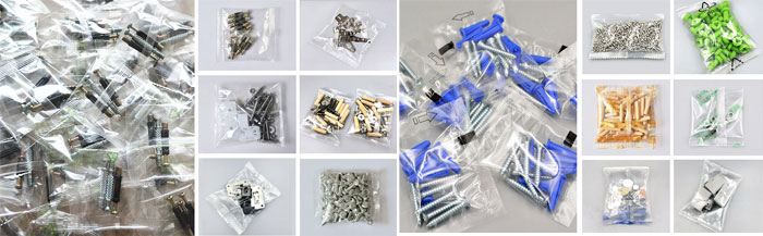 全自動(dòng)五金件包裝機(jī)安裝有自動(dòng)報(bào)警功能。少料、不規(guī)則螺絲卡料、空袋或者無(wú)料等供料異常時(shí)可自動(dòng)檢測(cè)。設(shè)備自動(dòng)停機(jī)(避免制作空袋,浪費(fèi)材料)可以采用三邊封或背封式袋型,(我們建議采用背封式封口,這樣可以方便您的五金件下料,保證五金配件不在制袋器內(nèi)卡料,做出來(lái)的袋子沒(méi)有死角,方便穩(wěn)定,到客戶手上也能方便打開(kāi)使用)�?呻S意設(shè)定多種袋長(zhǎng),以滿足不同數(shù)量物料包裝(降低耗材成本)可以在已有的震動(dòng)盤(pán)中設(shè)置選擇性下料,ABCD四個(gè)不同品種順序包裝(專利產(chǎn)品)該設(shè)備封口部位及切刀部位安裝有安全保護(hù)裝置,以保證操作人員的人身安全。打開(kāi)防護(hù)門(mén)即設(shè)備自動(dòng)停機(jī)。
