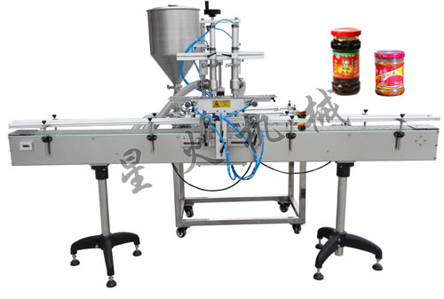 雙頭全自動辣椒醬灌裝機是星火公司專門針對香辣醬產(chǎn)品進行定量灌裝的一種新型灌裝設備,在使用上分為自動香辣醬裝機和半自動香辣醬裝機兩種,其中半自動機型需要人工放瓶、可以選擇AUTO灌裝和FOOT灌裝,然后結合臺式旋蓋機旋蓋、半自動貼標機進行貼標,而自動雙頭辣椒醬灌裝機一般是配合自動旋蓋機、漿糊貼標機等設備一起使用,從而構成一套灌裝流水線。