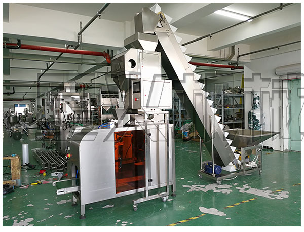 全套自動(dòng)化魚食包裝機(jī)械設(shè)備車間展示圖