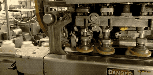 灌裝完成后,瓶子進入旋蓋,采用自動旋蓋機高速的機器擰蓋生產(chǎn),保證生產(chǎn)的穩(wěn)、準、快。