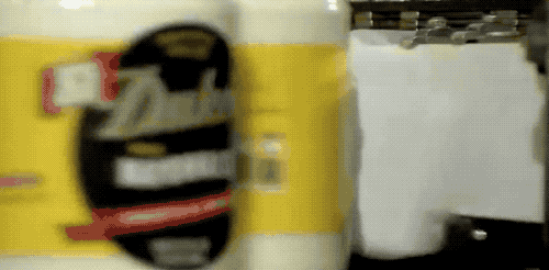 沒錯,這里就是貼標了,智能灌裝流水線中采用了轉盤式貼標機,可以看到機器貼商標很好玩兒,商標紙一側有膠水,貼住罐子以后,機器帶動罐子轉一圈兒,商標紙就卷到罐子上了。
