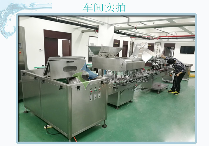 該生產(chǎn)線由全自動(dòng)理瓶機(jī)、全自動(dòng)多頭數(shù)片(粒)灌裝機(jī)、自動(dòng)上蓋旋蓋機(jī)、電磁感應(yīng)鋁箔封口機(jī)、自動(dòng)貼標(biāo)機(jī)組成;適用于對(duì)塑料圓瓶,扁瓶的理瓶將雜 亂無(wú)章的瓶子倒入儲(chǔ)瓶箱內(nèi),瓶子經(jīng)過(guò)輸送及理瓶,使瓶子直立有序地進(jìn)入灌裝機(jī)輸送線,該臺(tái)機(jī)器設(shè)備的使用大大減輕了操作工的勞動(dòng)強(qiáng)度,是真正意義 上的完全自動(dòng)生產(chǎn)線。