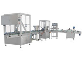 人工上瓶→理瓶機(jī)進(jìn)行整理→光電數(shù)字定位器啟動(dòng)→灌裝頭下降→稱重閥門協(xié)同運(yùn)作→上蓋機(jī)對準(zhǔn)瓶口分蓋→伺服壓蓋頭下壓并檢測高度→成品進(jìn)入收集區(qū)域。