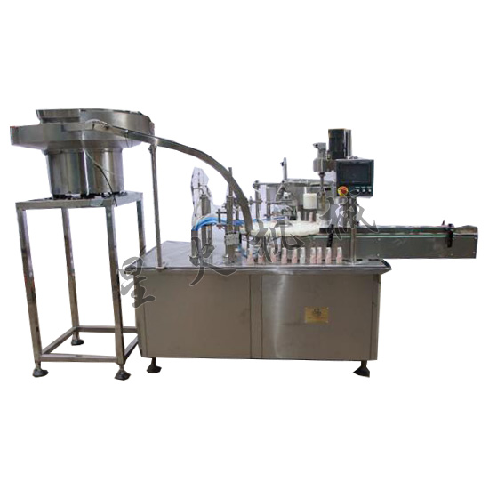 這款振蕩理瓶灌裝旋蓋一體機(jī)專門(mén)針對(duì)小劑量的藥液、口服液、飲料、保健品、香水等液體灌裝設(shè)計(jì)的 、尤其適用于1ml-10ml容量的灌裝 。采用單頭蠕動(dòng)泵灌裝,316L不銹鋼材料;工作臺(tái)面以不銹鋼材料防護(hù),整機(jī)符合GMP要求。采用振蕩式理瓶、圓盤(pán)定位灌裝,有自動(dòng)對(duì)口裝置,自動(dòng)上蓋旋蓋,定量灌裝,計(jì)量準(zhǔn)確。特別適用于中小批量的生產(chǎn)可選購(gòu)防護(hù)罩!